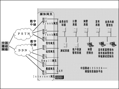 中國移動1259061增值信息服務平臺采用青牛軟件公司提供的網絡中間件產品。這個平臺采用移動通信網絡負責處理全國的呼叫接入,將來自全國的電話呼叫通過長途網從北京局匯入到該增值信息服務平臺上。呼叫分布到多臺服務器上,青牛網絡中間件實現話路的處理、語音的播報、數據的統計等等。