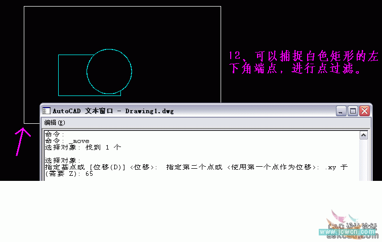 12、可以捕捉白色矩形的左下角端點,進行點過濾。