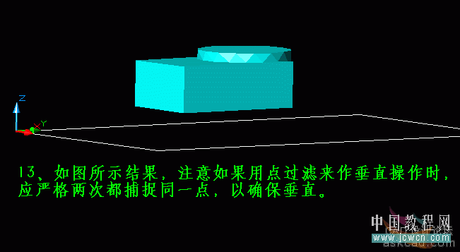 13、如圖所示結(jié)果,注意如果用點過濾來作垂直操作時,應(yīng)嚴格兩次都捕捉同一點,以確保垂直。
