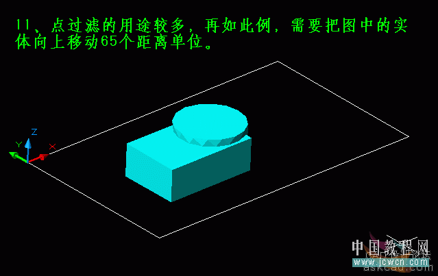 11、點過濾的用途較多,再如比例,需要把圖中的實體向上移動65個距離單位。
