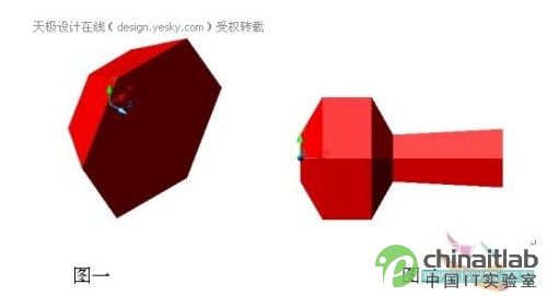 選擇修改/實(shí)體編輯/拉伸面命令,選擇看到的六邊形面,回車,指定拉伸高度18,回車,角度0回車,命令行直接輸入E回車,選擇拉伸后的六邊形面回車,輸入高度8回車,角度60回車。命令行直接輸入E回車,選擇拉伸后的六邊形面回車,輸入高度40回車,角度-3回車。如圖2。