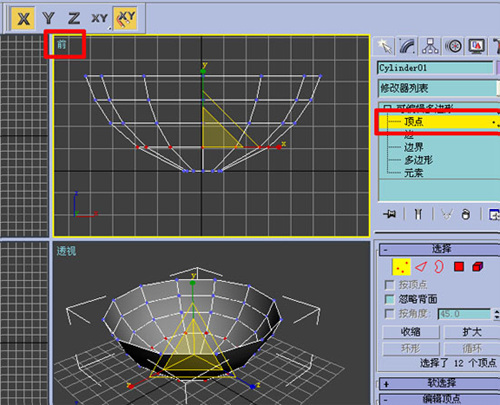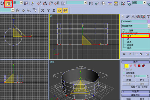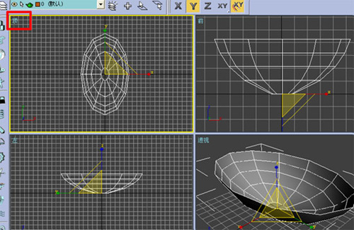 1、在頂視圖繼續(xù)調(diào)~~~2、透視圖選邊~~左視圖結(jié)合SHIFT鍵向右上方拉動
