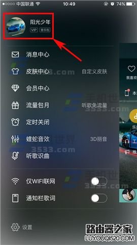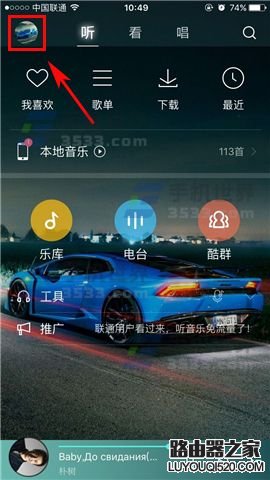 1)首先我們先打開【手機(jī)酷狗音樂】,然后點(diǎn)擊左上角的頭像或者在首頁(yè)往右滑動(dòng),然后點(diǎn)擊左上角的賬戶信息。(如下圖)