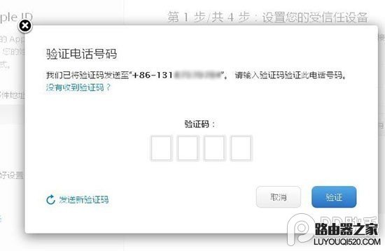 5. 添加手機號碼之后,在彈出的驗證框中輸入收到的短信驗證碼。