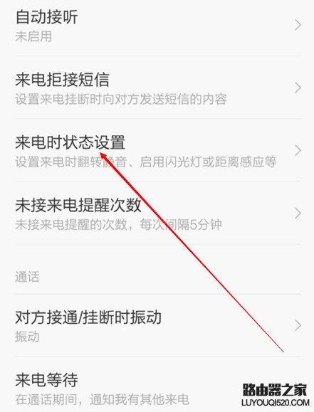 第三步,電話里邊找到一個叫做來電時狀態設置,一眼看不到的話,屏幕可以往下班滑動一下。