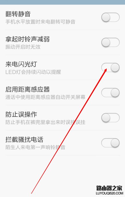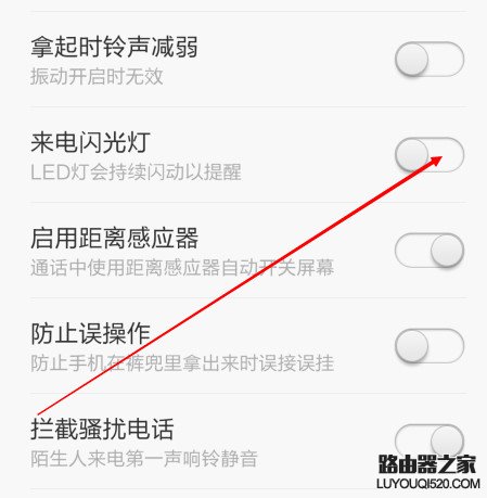 第五步,開啟以后,這樣如果有人再打電話的話你的手機后方閃光燈就一閃一閃的了