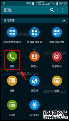1)打開三星S6的【設(shè)定】,選擇【應(yīng)用程序】欄的【通話】;(如下圖)