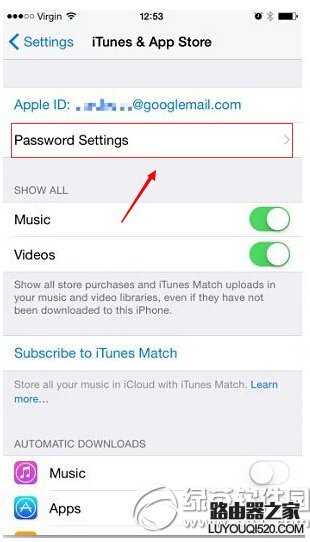 1,打開“設置”下拉找到“iTunes store 與app store”,如下圖: