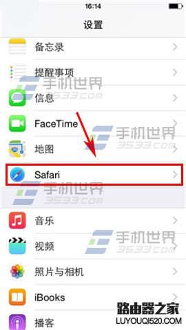 1)打開iPhone6的【設置】,然后點擊【Safari】進入。(如下圖)