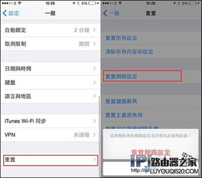 1、首先是還原網絡設置,這會清除之前登入的 WiFi 熱點,進入設置,依次點擊【通用】→【還原】→【還原網絡設置】,就會有密碼輸入,輸入之后就可以重置網絡設定。