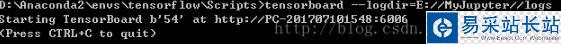 通過cmd進入系統命令模式,由于我的Tensorboard沒有導入系統環境變量中,所以必須將目錄cd到tensorflow中的scripts文件夾,執行里面的tensorboard.exe