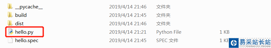最開始 D:/pyinstaller 目錄下只有hello.py這一個文件,其它的文件都是后生成的。