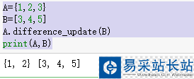 A={1,2,3}B=[3,4,5]A.difference_update(B)print(A,B)