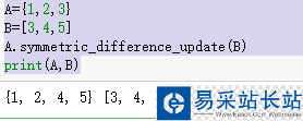 A={1,2,3}B=[3,4,5]A.symmetric_difference_update(B)print(A,B)