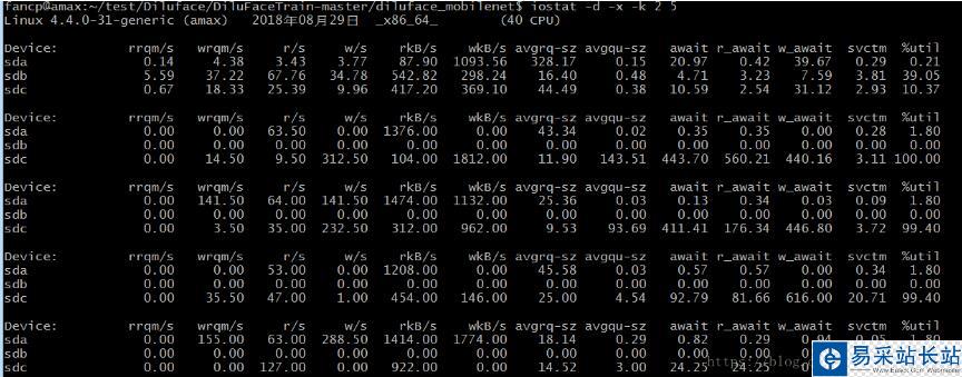 2)查看設(shè)備使用率(%util)、響應(yīng)時(shí)間(await)