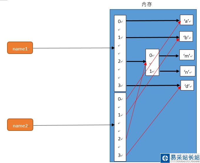 >>> name1 = ['a','b',['m','n'],'c']>>> name2 = name1#輸出結果,兩個內存地址是一樣的>>> print(id(name1),',',id(name2))50077256 , 50077256