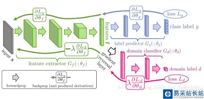 在深度學習中,有時候我們需要對某些節點的梯度進行一些定制,特別是該節點操作不可導(比如階梯除法如 ),如果實在需要對這個節點進行操作,而且希望其可以反向傳播,那么就需要對其進行自定義反向傳播時的梯度。在有些場景,如[2]中介紹到的梯度反轉(gradient inverse)中,就必須在某層節點對反向傳播的梯度進行反轉,也就是需要更改正常的梯度傳播過程,如下圖的