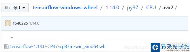 2. 在這里下載對應版本的tensorflow:https://github.com/fo40225/tensorflow-windows-wheel,比如我需要的是CPU+AVX2+Python3.7,那么我就選擇第二個: