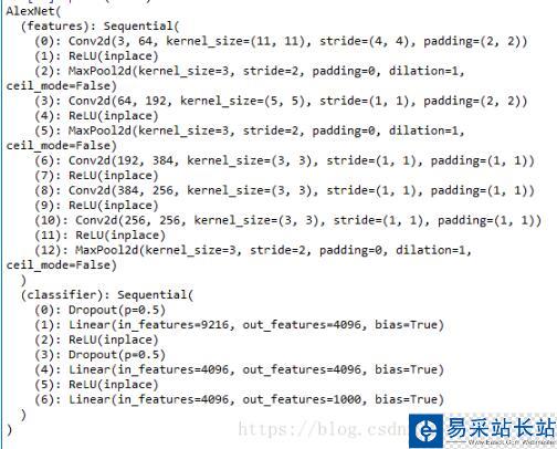 加載預(yù)訓(xùn)練alexnet之后,可以print出來查看模型的結(jié)構(gòu)及信息: