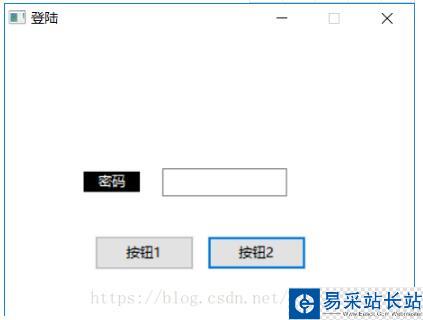 #-*- coding:utf-8 -*-import wx class TestFrame(wx.Frame): def __init__(self): wx.Frame.__init__(self,None,-1,u'登陸',size=(370,280),style=wx.MINIMIZE_BOX| wx.SYSTEM_MENU|wx.CAPTION|wx.CLOSE_BOX) self.SetBackgroundColour('white') self.button1 = wx.Button(self,-1,u'按鈕1',pos = (80,180)) self.button1.Bind(wx.EVT_BUTTON,self.OnButtonClick1) self.button2 = wx.Button(self,-1,u'按鈕2',pos = (180,180)) self.button2.Bind(wx.EVT_BUTTON,self.OnButtonClick2) #Button1顯示組件 self.text1 = None self.textc1 = None #Button2顯示組件 self.text2 = None self.textc2 = None def OnButtonClick1(self,event): if not self.text1: self.text1 = wx.StaticText(self,-1,u'用戶名',(70,73),(50,-1),wx.ALIGN_CENTER) self.text1.SetBackgroundColour('black')#設置背景顏色 self.text1.SetForegroundColour('white')#設置文本顏色 if not self.textc1: self.textc1 = wx.TextCtrl(self,pos=(140,70)) if self.text2: self.text2.Destroy() if self.textc2: self.textc2.Destroy() def OnButtonClick2(self,event): if self.text1: self.text1.Destroy() if self.textc1: self.textc1.Destroy() if not self.text2: self.text2 = wx.StaticText(self,-1,u'密碼',(70,123),(50,-1),wx.ALIGN_CENTER) self.text2.SetBackgroundColour('black')#設置背景顏色 self.text2.SetForegroundColour('white')#設置文本顏色 if not self.textc2: self.textc2 = wx.TextCtrl(self,pos=(140,120), style=wx.TE_PASSWORD) if __name__ == "__main__": app = wx.App() frame = TestFrame() frame.Show() app.MainLoop()