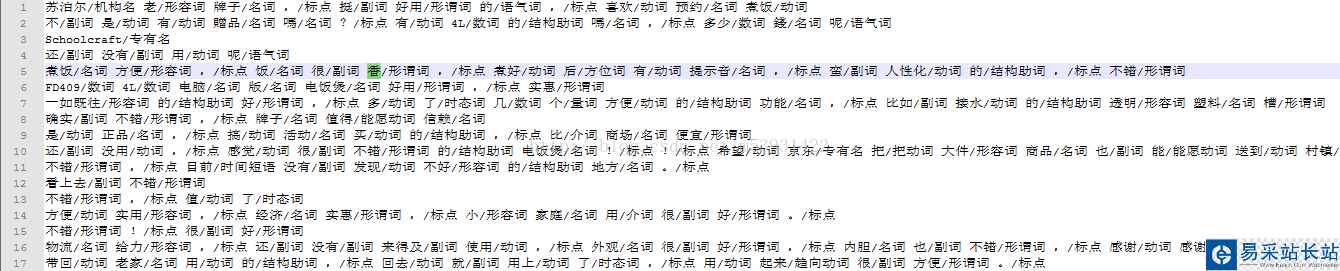 #encoding=utf-8 ############################# # # 功能:給定一些中文的產(chǎn)品評論,希望從中找到評價對象及評價詞。 # # @author:licl # ############################## fdata = open('JD_DFB_comments_out.txt','r') Output = open('Pattern_Result.txt','a') try: data = fdata.readlines() listline = [] for line in data: listline = line.replace(" ","/") listline = listline.split("/") i = 1 while i < len(listline): if listline[i] != "名詞": i = i+2 else: new_list = ["","",""] new_list[0] = listline[i-1] a = i-1 i = i+2 while i < len(listline): if listline[i] == "標(biāo)點": i = i+2 break else: if listline[i-1]=='不' or listline[i-1]=='不怎么樣' or listline[i-1]=='不怎么' or listline[i-1]=='不太': new_list[1] = listline[i-1] if listline[i] == "形容詞" or listline[i] == "形謂詞": new_list[1] += listline[i-1] b = i-1 t = (b-a)/2 new_list[2] = str(t) for line in new_list: Output.write(line + " ") Output.write("/n") break else: i = i+2 except: print "‘文件不存在'或者‘文件無法打開'" finally: fdata.close() Output.close()