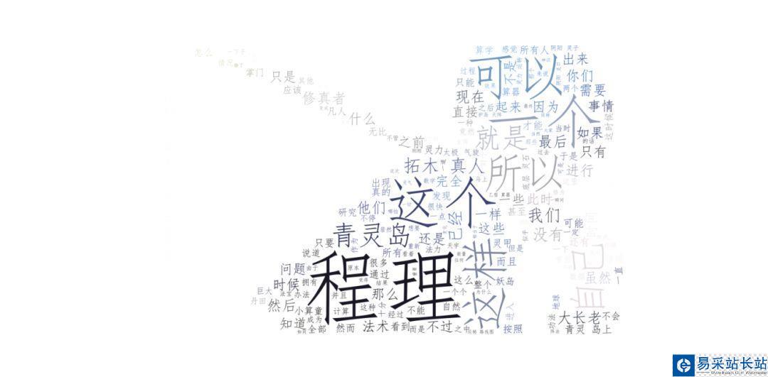 根據效果圖分析的還是比較準確的,小說中的主人公就是“程理”,所以出現次數最多。圖中有兩種模式,一種是默認的模式,另一種是自己添加圖片作為背景。下面我就帶大家一起來學習怎樣去生成詞云!