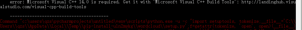 對于新人來說安裝wordcloud模塊就是一大關,我們一般都是通過Pycharm或者PIP安裝的,但是在安裝wordcloud時會提示錯誤,如下: