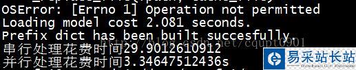 #coding:utf-8import sysreload(sys)sys.setdefaultencoding("utf-8")from multiprocessing import Pool,Queue,Processimport multiprocessing as mp import time,randomimport osimport codecsimport jieba.analysejieba.analyse.set_stop_words("yy_stop_words.txt")def extract_keyword(input_string): #print("Do task by process {proc}".format(proc=os.getpid())) tags = jieba.analyse.extract_tags(input_string, topK=100) #print("key words:{kw}".format(kw=" ".join(tags))) return tags#def parallel_extract_keyword(input_string,out_file):def parallel_extract_keyword(input_string): #print("Do task by process {proc}".format(proc=os.getpid())) tags = jieba.analyse.extract_tags(input_string, topK=100) #time.sleep(random.random()) #print("key words:{kw}".format(kw=" ".join(tags))) #o_f = open(out_file,'w') #o_f.write(" ".join(tags)+"/n") return tagsif __name__ == "__main__": data_file = sys.argv[1] with codecs.open(data_file) as f: lines = f.readlines() f.close() out_put = data_file.split('.')[0] +"_tags.txt" t0 = time.time() for line in lines: parallel_extract_keyword(line) #parallel_extract_keyword(line,out_put) #extract_keyword(line) print("串行處理花費時間{t}".format(t=time.time()-t0)) pool = Pool(processes=int(mp.cpu_count()*0.7)) t1 = time.time() #for line in lines: #pool.apply_async(parallel_extract_keyword,(line,out_put)) #保存處理的結(jié)果,可以方便輸出到文件 res = pool.map(parallel_extract_keyword,lines) #print("Print keywords:") #for tag in res: #print(" ".join(tag)) pool.close() pool.join() print("并行處理花費時間{t}s".format(t=time.time()-t1))