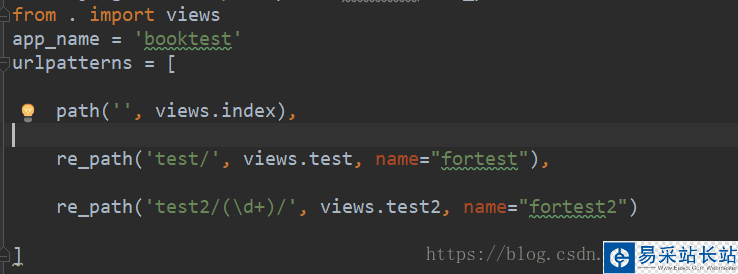 所謂反向解析就是根據命名來調到指定的頁面,這里表示的是跳轉到booktest模板下面的fortest2這個視圖里面, 而這個fortest2正是我們定義的名字,后面的2表示需要傳遞過去的參數