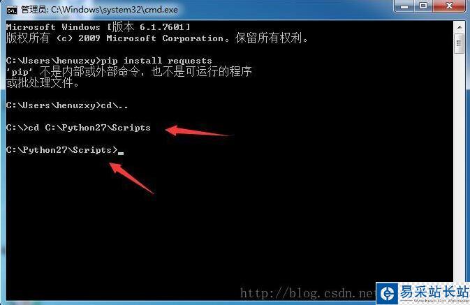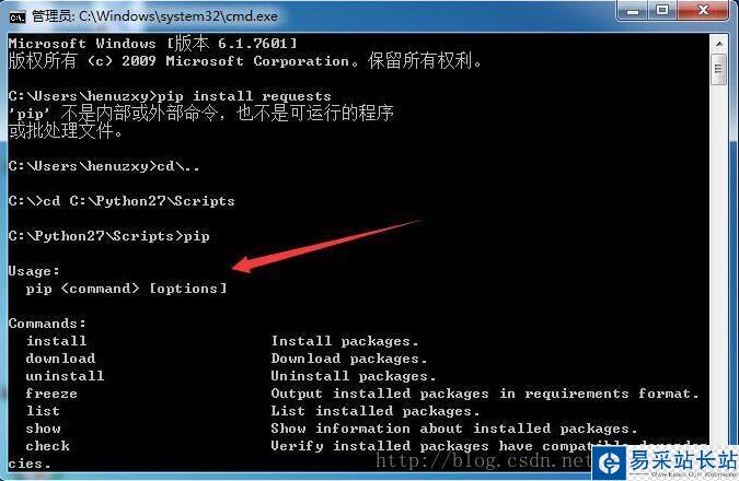 我發(fā)現(xiàn)我里面有pip和easy_install,也就是我可以使用pip命令所以我們要在這個(gè)文件夾下使用pip命令