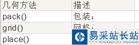 Tkinter控件有特定的幾何狀態(tài)管理方法,管理整個控件區(qū)域組織,一下是Tkinter公開的幾何管理類:包、網(wǎng)格、位置
