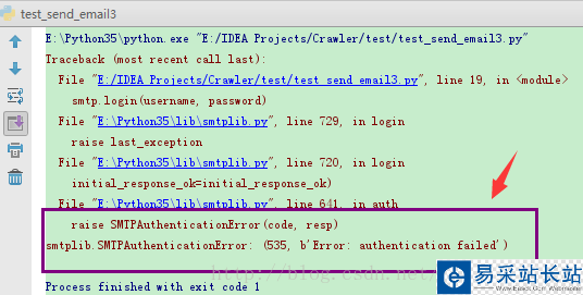 測試的前提是你需要開通客戶端授權,開通后會讓你設置密碼,那個密碼要記好,下面的passwd接收的是授權密碼而不是郵箱密碼!否則會出現下圖所示的錯誤提示: