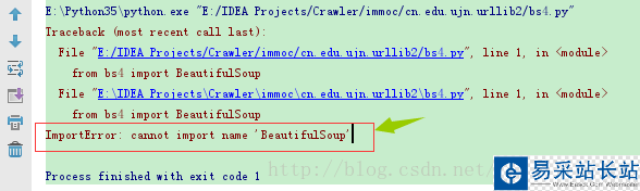 以上錯誤提示是說沒有發現名為“bs4”的模塊。即“bs4”模塊未安裝。