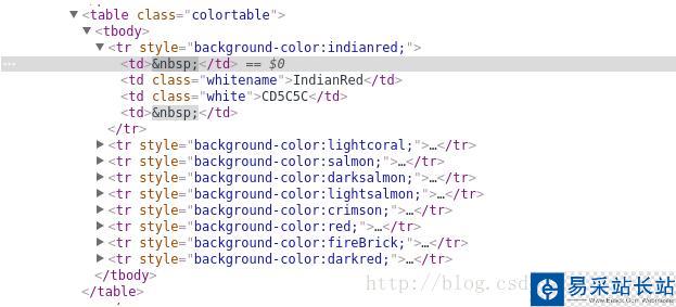 首先我們來爬取 http://html-color-codes.info/color-names/ 的一些數(shù)據(jù)。