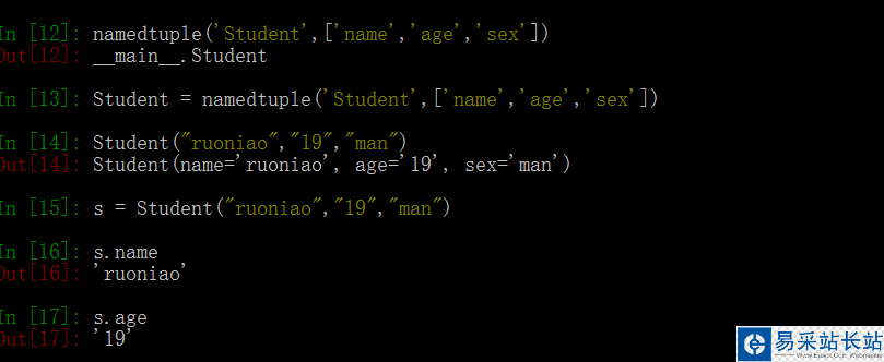 Student是namedtuple的名稱,后面的列表是其元素創建時還可以