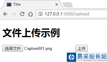 <!DOCTYPE html><html lang="en"><head> <meta charset="UTF-8"> <title>Title</title></head><body> <h1>文件上傳示例</h1> <form action="" enctype='multipart/form-data' method='POST'> <input type="file" name="file"> <input type="submit" value="上傳"> </form></body></html>