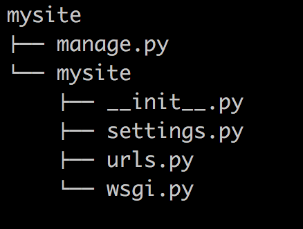 當前目錄下會生成一個mysite項目目錄,結構如下: