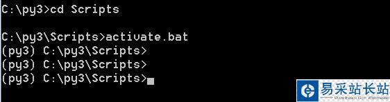 進入到Scripts,執行activate.bat,如下圖表示激活成功