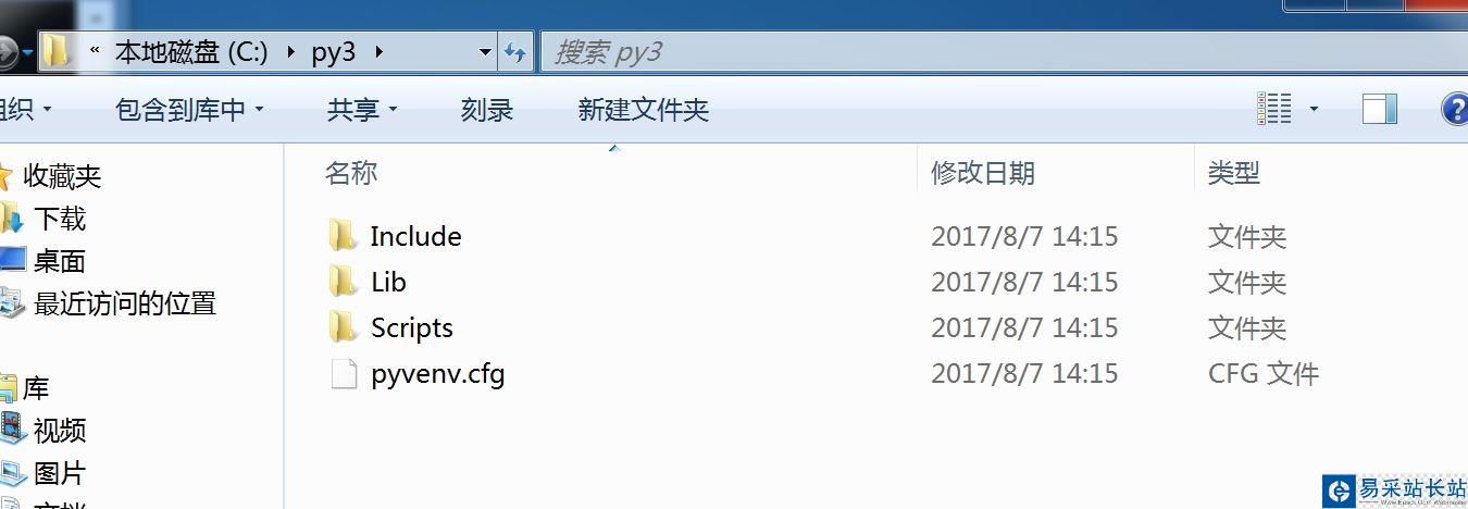 我這里演示例子是在c盤根目錄建立一個py3目錄