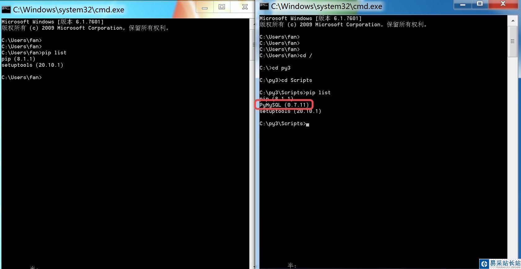 這個時候可以在虛擬環境進入到python3并安裝我們需要的包而不會影響我們系統安裝的python3的包環境,這里我在虛擬環境中安裝了pymysql包,然后分別在虛擬環境和外面的環境中pip list列出包,可以看到,我們外面的包中并沒有pymysql包