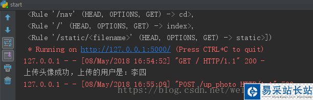 點擊提交信息后,通過 http://localhost:5000/up_photo,傳遞到后臺對應的路由處理,查看控制臺: