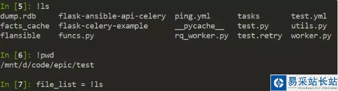 另一個很酷的功能是使用 ! 字符執行系統 shell 命令的能力。然后還可以在 IPython shell 中引用該命令的結果。