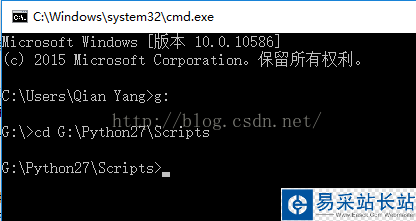 2.采用cd命令進入到Scripts 目錄下面:G:/Python27/Scripts