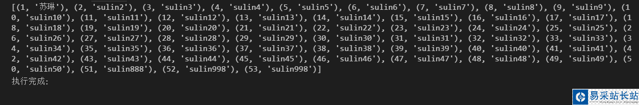 import timeimport pymssql#import decimalclass MSSQL: def __init__(self,host,user,pwd,db): self.host=host self.user=user self.pwd=pwd self.db=db def GetConnect(self): if not self.db: raise(NameError,'沒有目標(biāo)數(shù)據(jù)庫') self.connect=pymssql.connect(host=self.host,user=self.user,password=self.pwd,database=self.db,charset='utf8') cur=self.connect.cursor() if not cur: raise(NameError,'數(shù)據(jù)庫訪問失敗') else: return cur def ExecSql(self,sql): cur=self.GetConnect() cur.execute(sql) self.connect.commit() self.connect.close() def ExecQuery(self,sql): cur=self.GetConnect() cur.execute(sql) resList = cur.fetchall() self.connect.close() return resList def main(): ms = MSSQL(host="192.168.0.108", user="sa", pwd="sa", db="ComPrject") resList = ms.ExecQuery("select *from TestModel") print(resList)if __name__ == '__main__': main() input("執(zhí)行完成:")