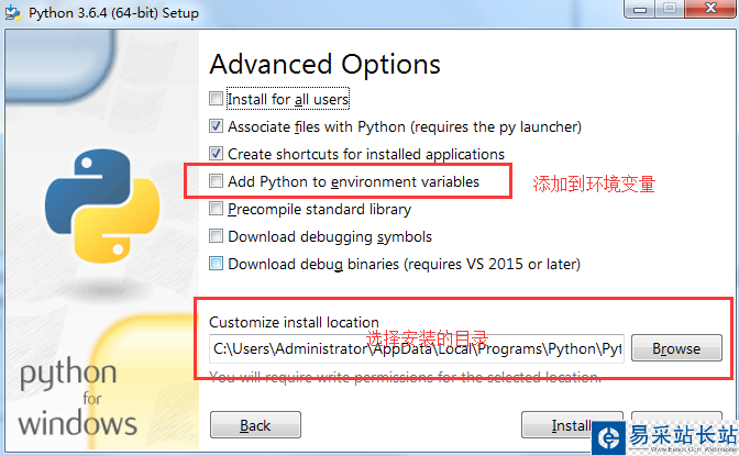 ok了,點(diǎn)擊install進(jìn)行安裝,在這里我安裝的目錄是D盤,D:/Python36 目錄名可以自定義