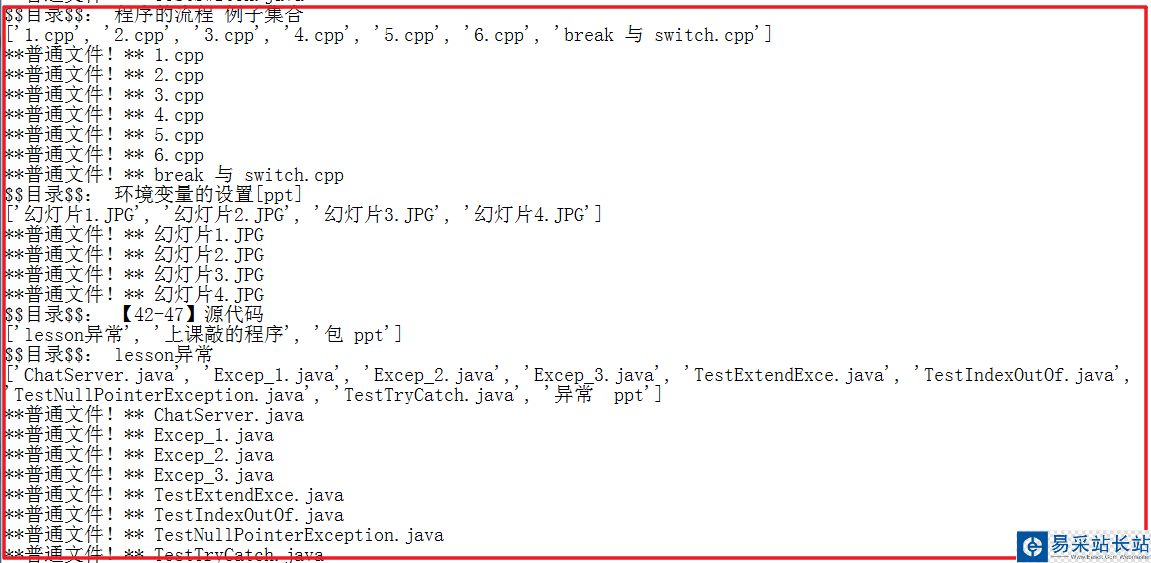 #__author:"吉*佳"#date: 2018/10/21 0021#function:import osdef getAllDir(path): fileList = os.listdir(path) print(fileList) for fileName in fileList: fileAbsPath = os.path.join(path,fileName) if os.path.isdir(fileAbsPath): print("$$目錄$$:",fileName) getAllDir(fileAbsPath) else: print("**普通文件!**",fileName) # print(fileList) passgetAllDir("G://")