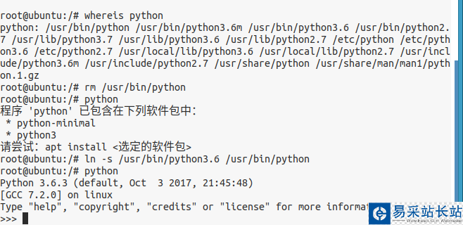 在沒配置之前,我的Ubuntu中安裝了python2.7和python3.6。而且輸入python默認(rèn)使用的是python2.7