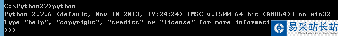 測試Python是否安裝成功,在命令提示符中輸入python命令,出現以下提示表示Python2.7.6安裝成功到主機。
