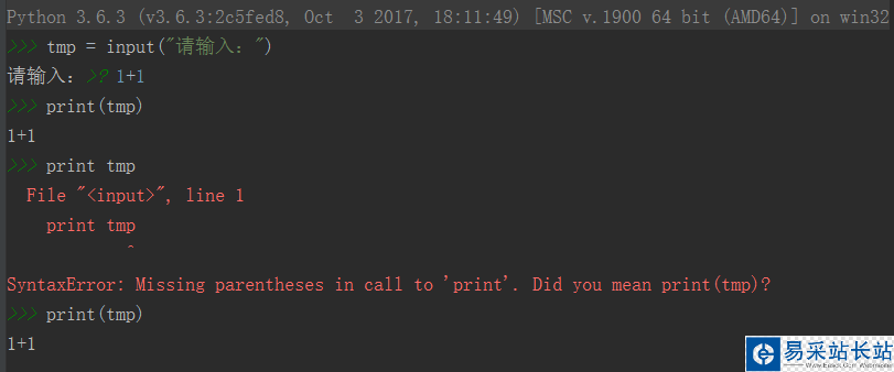 1.2 input()會把用戶輸入的內容當做代碼來執行: