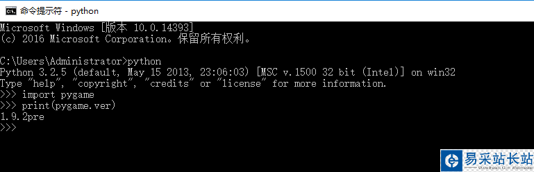 所有安裝完畢!使用cmd命令窗口測(cè)試:(顯示了pygame版本)